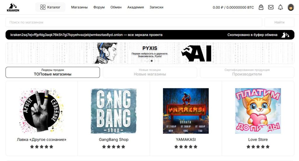 Kraken — это не просто маркетплейс, это целый подводный мир в даркнете, где анонимность правит балом. Название, вдохновленное мифическим морским чудовищем, идеально отражает его суть: мощный, загадочный и неуловимый. Платформа предлагает широкий ассортимент товаров и услуг, от тех, что вызывают любопытство, до тех, что лучше оставить без комментариев. Но что делает Kraken особенным? Это его устойчивость и способность адаптироваться, даже когда даркнет сталкивается с бурями в виде блокировок или атак.